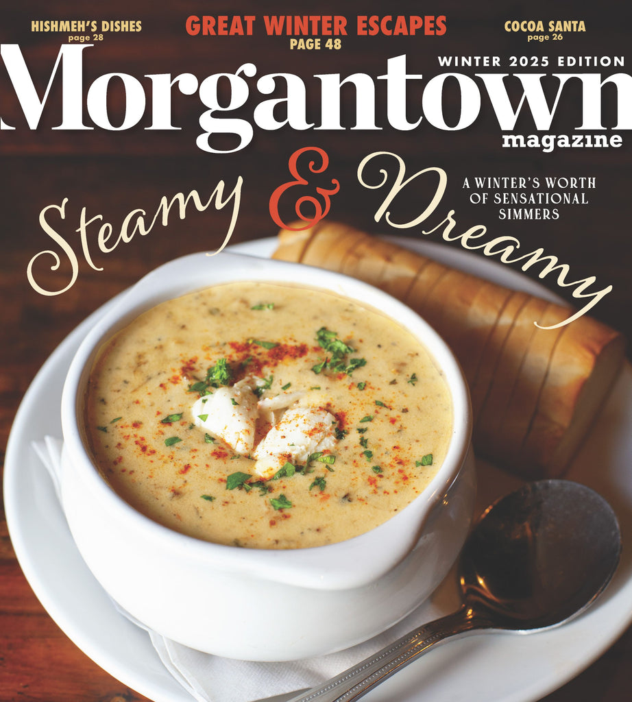 Discover your new favorite winter warmer in our photofeature rounding up some of Morgantown’s most sublime soups. Then, plan a winter near-cation at a charming town close to your favorite snowy recreation spot. You’ll also find a hidden historical gem—updates on the airport, teen court, and the camping ban—previews of upcoming theater and holiday events—and love for some of the people, businesses, and nonprofits that made for a great year in Morgantown in our Winter 2025 issue.